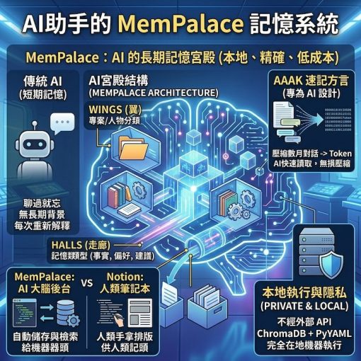 你有沒有發現,現在的 AI 雖然聰明,但往往聊過就忘?就像一個只有「短期記憶」的同事,每次對話都要重新解釋背景。今天要介紹的 MemPalace 就是為了幫 AI 裝上「 […]
